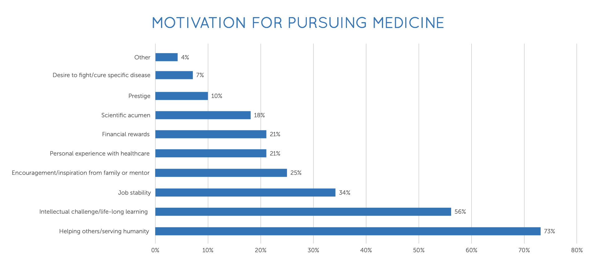 We went into medicine to help people. Nearly three-quarters of survey respondents in the report cited a desire to help others and serve humanity as a primary motivator for their decision to practice medicine.