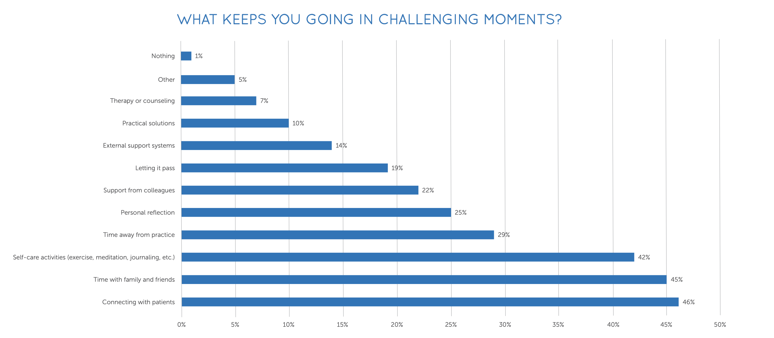 - Administrative hurdles: An excess of paperwork, negotiating insurance and regulatory compliance take time — often, time that is meant for patient care. Reduced administrative burden was a top answer that respondents provided in response to the question “What could strengthen your ability to live out your life’s purpose?”