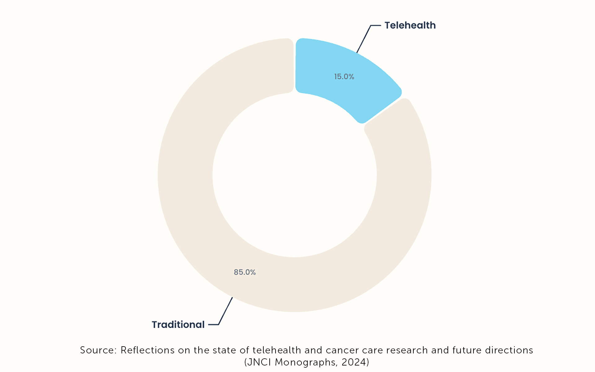 Current data indicates 15% of oncology visits now occur via telehealth, a percentage expected to increase as both patients and providers increasingly recognize the advantages of fully remote care and hybrid telehealth strategies. Benign hematology conditions align perfectly with virtual care delivery: